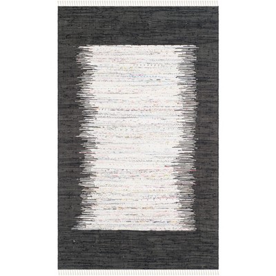 Striped Kilim STK201 Hand Woven Area Rug - Ivory/Black - 5'x8' - Safavieh.