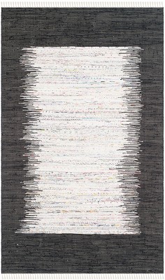 Striped Kilim STK204 Hand Woven Area Rug - Ivory/Black - 4'x6' - Safavieh.