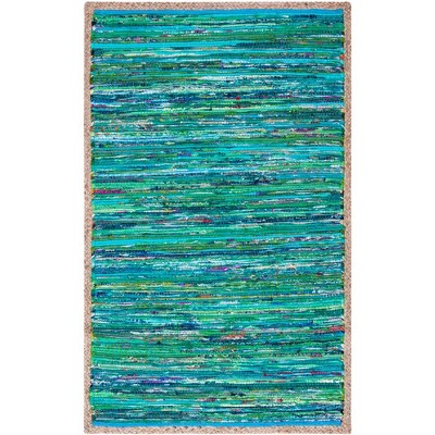 Striped Kilim STK312 Hand Woven Area Rug - Green/Natural - 3'x5' - Safavieh.