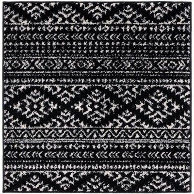 Striped Kilim STK511 Hand Woven Area Rug - Black/Ivory - 3'x3' - Safavieh.