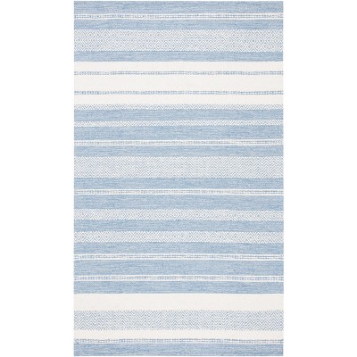 Striped Kilim STK515 Hand Woven Indoor Area Rug - Navy/Ivory - 6'x9' - Safavieh