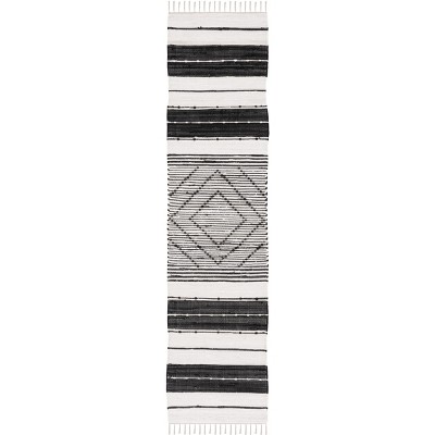 Striped Kilim STK518 Hand Woven Runner Rug - Black/Ivory - 2'3"x9' - Safavieh.