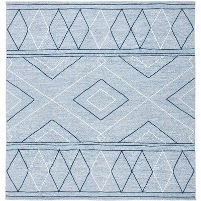 Striped Kilim STK522 Hand Woven Area Rug - Navy/Ivory - 7'x7' - Safavieh.