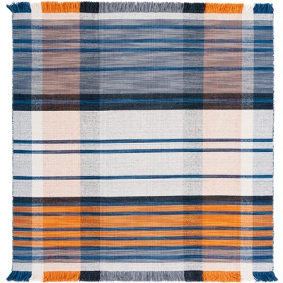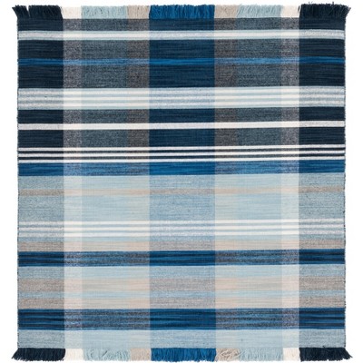 Striped Kilim STK707 Hand Woven Area Rug - Blue/Beige - 6'x6' - Safavieh.