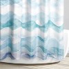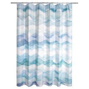 Give your bathroom a fresh new look with the Roller Stripe Blue Shower Curtain by Allure Home Creation. This contemporary design, which features a flowing wavy design in shades of watercolor blues and teals on a white ground, will bring a sense of calm to your room. This printed shower curtain measures 70" x 72" and fits most standard sized tubs and shower areas providing privacy as well as protection from water splashing onto the floor. Crafted from 100% easy care polyester fabric with a reinforced buttonhole top that works well with standard shower hooks and curtain rods. Use of a liner is recommended. Machine wash and tumble dry on low heat.