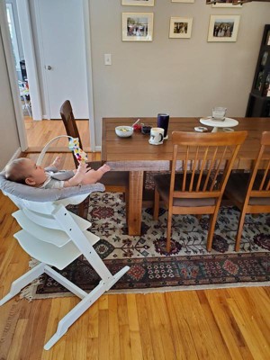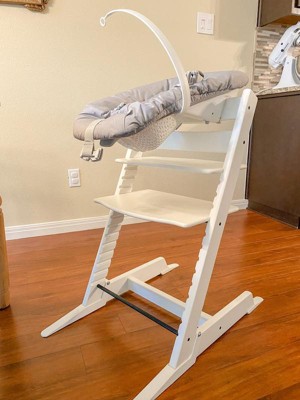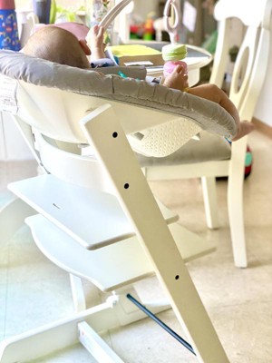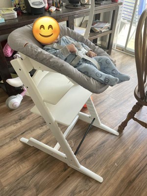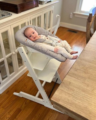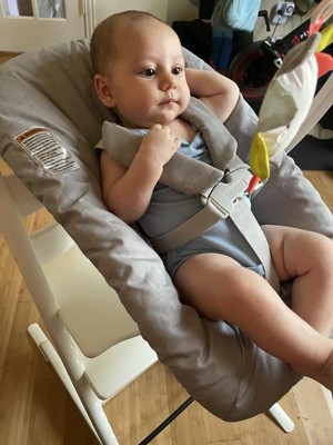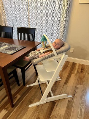 [This review was collected as part of a promotion.] My husband and I are loving the Tripp Trapp Newborn Set for our now 3 month old baby boy. It was easy to set up and I did it by myself without issues. The newborn seat snaps on easily to the chair. We love that our baby can be right up at the table with us during meal time. We also turn the chair around while we are cooking and can engage the baby in the kitchen as he plays with the hanging toy we attached to the toy arm. The Stokke Tripp Trap chair is so nice and blends into our open concept space without looking like more baby gear. I am so excited that this chair will grow with us as our son gets bigger. We purchased the baby set in white to match the white chair and look forward to beginning baby led weaning when he can sit up in a few months. This chair is an investment, but the fact that we will use it from birth well into childhood and beyond makes it a worthwhile purchase that we will use with all of our children. Thanks to the Stellar Product Testing Panel for providing me with this high chair newborn set!