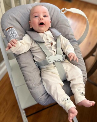 [This review was collected as part of a promotion.] I was so excited to receive this high chair/newborn set from the Stellar Product Testing Panel! I’ve always put my baby in a bouncer or held her while eating dinner, but this newborn set provides the perfect solution to the dinner time struggle by bringing baby to the table with the family. My baby loves being able to watch the family eat and loves playing with the toy on the toy bar (it’s the perfect position for her to use either her hands or feet to play). The newborn set is easy to attach and remove from the chair and seems very comfortable. The straps are easy to adjust and well cushioned. My favorite feature is the buckle closure. It’s a smooth close and open so I don’t worry about pinching myself or baby on it. I love that this chair has really found a way to work for every stage of life. We’re excited to soon convert it to a high chair!