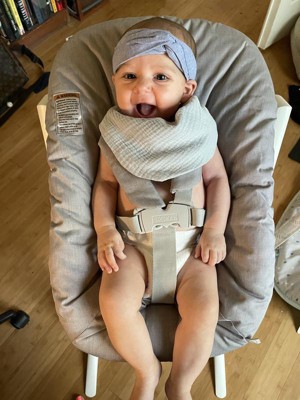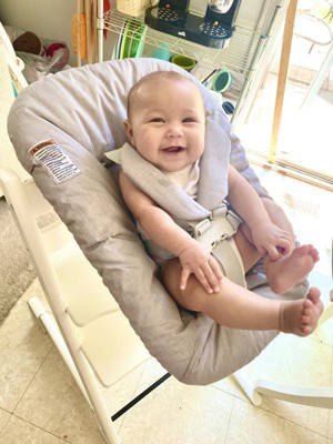 [This review was collected as part of a promotion.] First, I'll mention that I received this product as part of a Stellar Product Testing Panel. The great thing about this chair is that you're able to use this chair from birth, thanks to this newborn seat. We've had other infant seats but those were either too bulky for the kitchen or they sat on the floor which isn't great when you have a dog. With the TrippTrapp set we were able to bring the baby alongside the table. The great thing about this attachment is, having used just the seat before, we know we can transition our infant into the high chair when the time is right.
