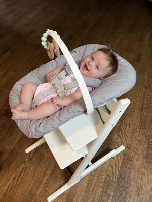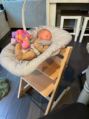 [This review was collected as part of a promotion.] What a great addition to the tripp trapp! Having a way to have our infant at the table is so nice. Even when working in the kitchen baby’s almost at counter height and easy to tend to/ multitask along side of. Plus it’s such a back saver to put our daughter in and out of with ease even if for a short time. We found it worked best when our two year old was also strapped in for mealtime. The seat is sturdy but I’d be nervous to have our toddler pulling at it/hanging on it. I think it would be great for stokke to include some toy for the mobile arm—currently we just hang random things/teethers from it. Overall wish I had it with my first instead of keeping our tripp trapp in the closet for the first 5 months. Thanks to the Stellar Product Testing Panel for providing me with this high chair.