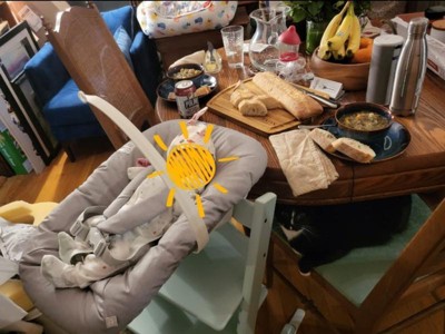 [This review was collected as part of a promotion.] I received a Stokke Tripp Trapp high chair with newborn set through the Stellar Product Testing Panel, for use with my baby. I actually already had a Tripp Trapp from my daughter, who is now almost 4 years old. So even as I received this one complementarily, I have paid in full for one previously. Which is to say, please trust I mean it when I say the Tripp Trapp is worth the price. While we already had a Tripp Trapp, this Stellar Panel is our first time with the newborn set, and it came at just the right moment. My son is 4 months old and cleared for light solids. Feeding a young baby is generally a mess--they're sitting on your lap, they're squirming, oatmeal is dripping down their chin and onto the floor. So I've loved that the newborn set makes this process easier. And an easier process with a baby is instantly a more joyous one, as you can focus on the fun part and not on the challenging part. The newborn seat is easy to pop on, is secure once it's on, appears comfy for baby, and looks and feels nice--bringing him right to the table with the rest of the family. From here, I absolutely *know* I will continue using the Tripp Trapp with him. I know this because we still use our first Tripp Trapp with our daughter, these multiple years later. It has served us well, from those early days with the baby seat and food tray (thank goodness it's so easy to remove and clean that tray!), to the milestone-feeling days where you adjust the seat to reflect your growing child's new height. I love that, at almost 4 years old, she has a chair that's a good size for her. A traditional high chair would be too small physically, and would infantilize her. A dining room chair would be too big; a dining room chair with a booster on it wouldn't be sturdy and wouldn't fully feel like hers. So the Tripp Trapp is really purpose-built to grow with your kid, and it shows.
