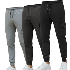 Product Name: Studio 3 Mens' 3-Pack Fleece Cargo Jogger Sweatpants, Heather Gray/Charcoal/Black, Large