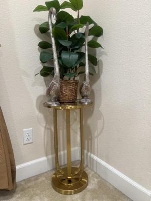 Sure! Here's a simpler and more concise review: Gold Accent Table - Simple and Elegant I love this gold accent table! It looks stylish and adds a nice touch to my room. It's sturdy and easy to clean. Perfect for small spaces or as a decorative piece. Great value for the price!