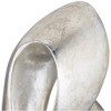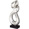 The silver leaf open infinity sculpture with 8" square acrylic riser makes a bold, yet elegant, statement with its flowing design. Constructed from polyresin, and resting atop a black finish stand, this piece is breathtaking above a fireplace mantel.