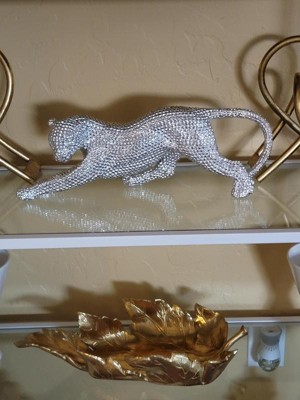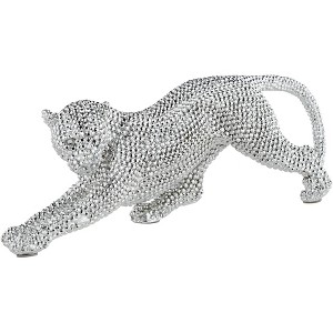 Shimmering with jeweled accents, this dazzling leopard sculpture will command attention on any bookcase or console. An eye-catching electroplated silver finish delivers a chic touch and wonderful shine to this appealing piece.