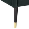- Comfy Hunter green color fabric. Black finish rubber wood legs with gold stainless steel caps.