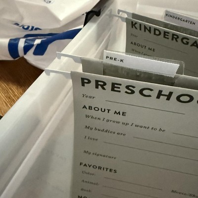 - 14 pre-printed hanging file folders to document and store memories from Preschool, Kindergarten, and 1st through 12th Grade