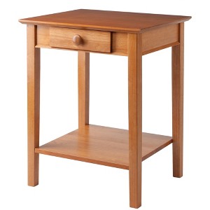 Finish your home office with this Studio End Printer Table from Winsome. This beautiful wooden printer table comes in a honey-colored stain for a look that mixes well with a variety of decor, and the rectangle shape makes it the perfect choice for your home office. The built-in shelf adds extra storage space, while the drawer is perfect for small items and stationery. Choose this sturdy wooden table for functional style you'll appreciate for years to come.