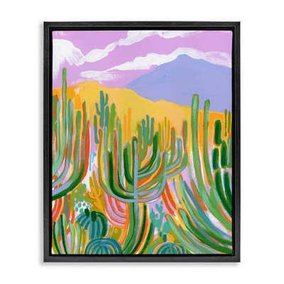 Stupell Industries Abstract Cactus Plants Desert Dunes Floating Frame Canvas Art, Gray, 25" x 31"