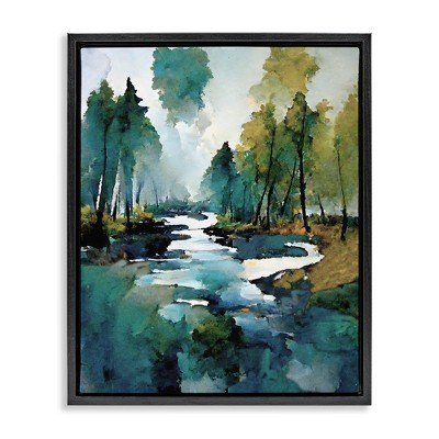 Stupell Industries Mountains and Lake Pine Painting Framed Giclee Art
