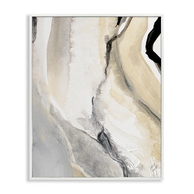 Stupell Industries Abstract Paint Strokes Fluid Beige Movement Framed Giclee Art, Gray, 24" x 30"