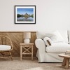 Our Framed Print Under Glass is a modern way to display art with a crisp, clean finish. A digitally printed paper is framed with a white mat under durable PETG plastic. The bevel cut mat is made of paper pulp mat board. The frame is constructed from real wood with a wrapped finish. It includes a pre-installed sawtooth hanger for easy hanging. Available in black, birch, gray and white finishes.