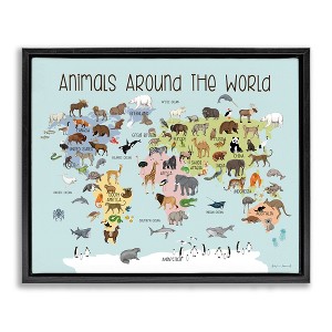Stupell Industries Animals Around The World Map Floating Frame Canvas Art
