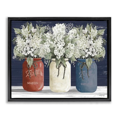 Stupell Industries Antique Floral Bouquets in Jars Framed Giclee Art, Black, 20" x 16"