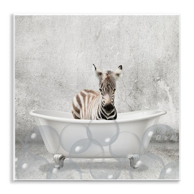 Stupell Industries Baby Zebra Bath Time Framed Giclee Art, White, 12" x 12"