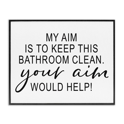 Stupell Industries Bathroom Aim Humorous Typography Washroom Signage Framed Giclee Art, White, 14" x 11"