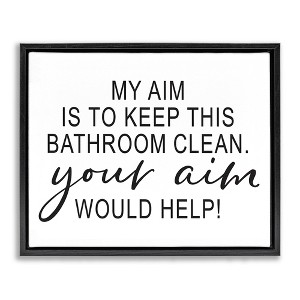 Stupell Industries Bathroom Aim Humorous Typography Washroom Signage Floating Frame Canvas Art
