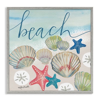 Stupell Industries Beach Calligraphy Seashells Clams Starfish Ocean Foam Wall Plaque Art, 12" x 12"