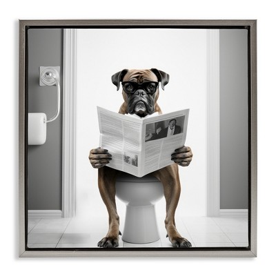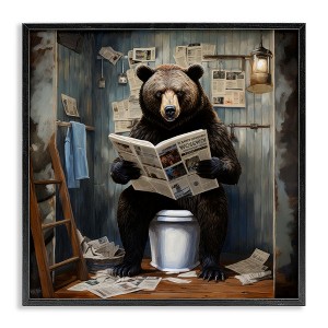Stupell Industries Bear with Newspaper Bathroom Framed Giclee Art