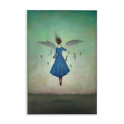 Stupell Industries Beauty and Birds at Night Blue and Teal Illustration Wall Plaque Art, 13" x 19"