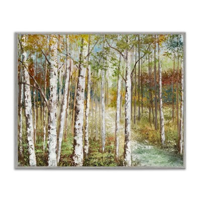 Stupell Industries Birch Orchard Grove Hiking Path Passage Impressionist Painting Framed Giclee Art, Black, 20" x 16"