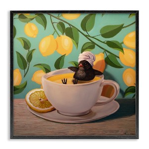 Stupell Industries Bird Bathing Lemon Tea Framed Giclee Art