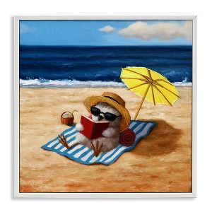 Stupell Industries Bird Sunbathing Reading Beach Framed Giclee Art
