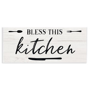 Stupell Industries Bless This Kitchen Phrase Minimal Typography Fork Knife Wall Plaque Art, 17" x 7"
