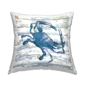 Stupell Industries Blue Crab on Distressed Indoor Decorative Throw Pillow, 18 x 18