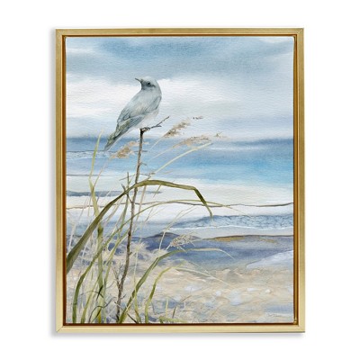 Stupell Industries Blue Flowers Perfume Bottle Floating Frame Canvas Art, Gold, 17" x 21"