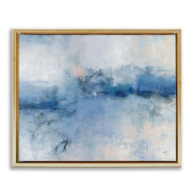 Stupell Industries Blue Line Abstraction Floating Frame Canvas Art