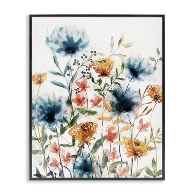 Stupell Industries Blue Swirling Modern Flowers Framed Giclee Art