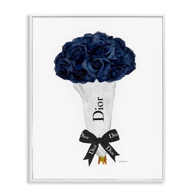 Stupell Industries Blue Rose Floral Bouquet Fashion Glam Bow, 30" x 24"
