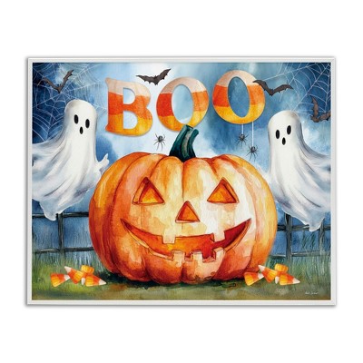 Stupell Industries Boo Ghosts & Jack-o-Lantern Framed Giclee Art, Gray, 20" x 16"