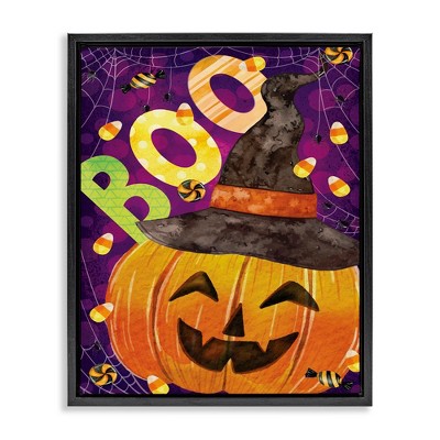 Stupell Industries Boo Haunted Night Gravestone Floating Frame Canvas Art, Black, 25" x 31"