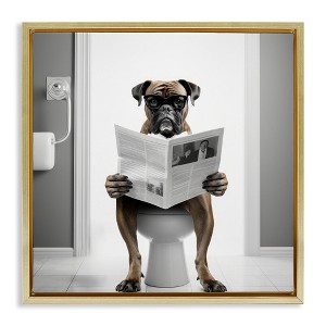 Stupell Industries Boxer Dog & Newspaper Floating Frame Canvas Art