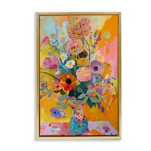 Stupell Industries Bright Hued Mod Bouquet Floating Frame Canvas Art, Gold, 21" x 31"