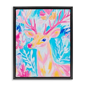 Stupell Industries Bright Pastel Deer Floating Frame Canvas Art, Black, 25" x 31"
