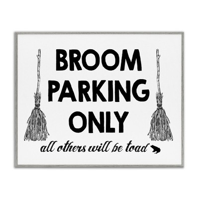 Stupell Industries Broom Parking Witty Halloween Witch Phrase Typography Framed Giclee Art, White, 30" x 24"