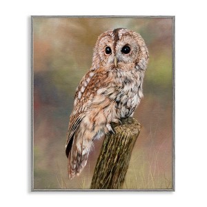 Stupell Industries Brown Tawny Owl Perched Intricate Woodland Wildlife Painting Framed Giclee Art, Gray, 24" x 30"