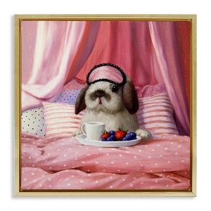 Stupell Industries Bunny with Breakfast In Bed Floating Frame Canvas Art, Gold, 18" x 18"
